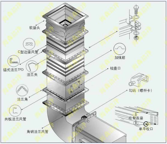 風(fēng)管,是用于空氣輸送和分布的管道系統(tǒng)。有復(fù)合風(fēng)管和無機風(fēng)管兩種。復(fù)合風(fēng)管以Durkduct風(fēng)管為代表??砂唇孛嫘螤詈筒馁|(zhì)分類。風(fēng)管制作不銹鋼風(fēng)管制作是在咬口縫、鉚釘縫、法蘭翻邊四角等縫隙處涂上密封膠(如中性玻璃膠)。涂密封膠前應(yīng)清除表面塵土和油污。按截面形狀,風(fēng)管可分為圓形風(fēng)管,矩形風(fēng)管,扁圓風(fēng)管等多種,其中圓形風(fēng)管阻力小但高度尺寸大,制作復(fù)雜。所以應(yīng)用以矩形風(fēng)管為主。按材質(zhì),風(fēng)管可分為金屬風(fēng)管,復(fù)合風(fēng)管,高分子風(fēng)管。
